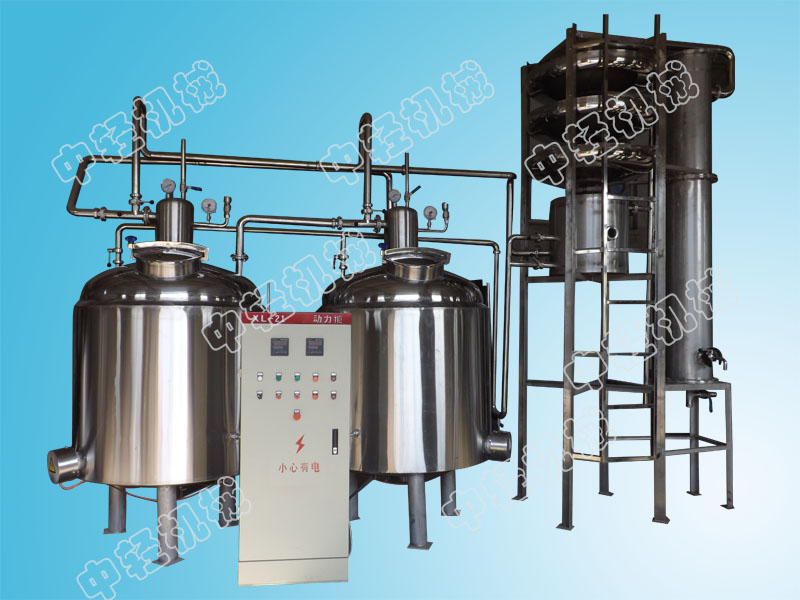本機(jī)組是一種間斷蒸餾設(shè)備,主要供作果酒廠蒸餾發(fā)酵后的果渣等固體物料和發(fā)酵醪液等液體物料。本機(jī)組的蒸餾鍋采用電熱管加熱,可在無鍋爐供汽的條件下進(jìn)行蒸餾。